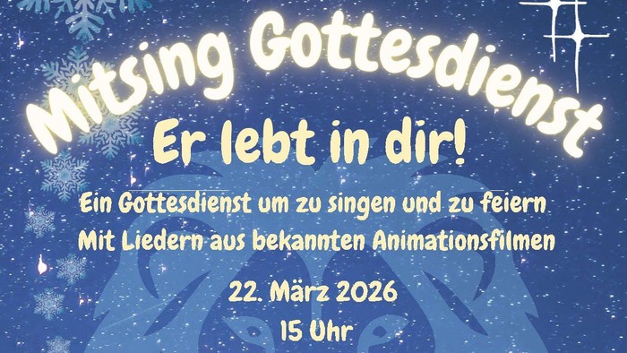 Mitsing Gottesdienst mit Liedern aus bekannten Animationsfilmen“, zentral in Haspe